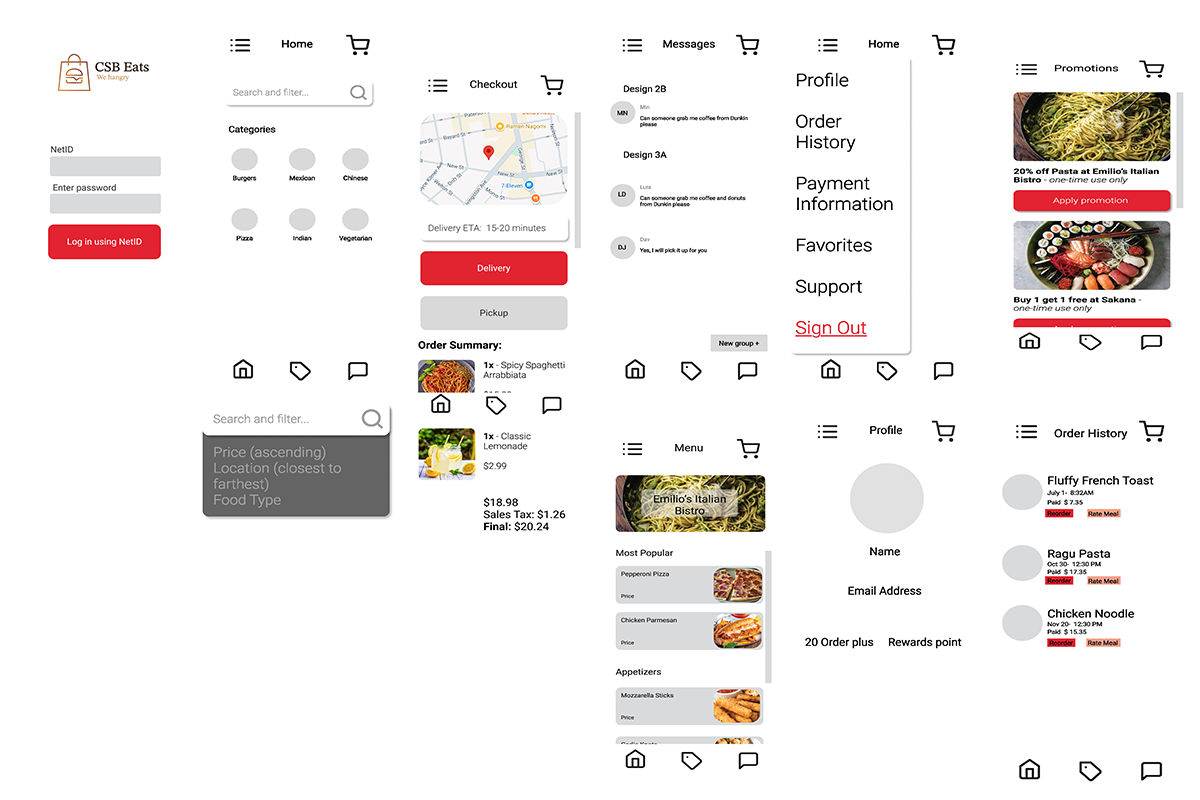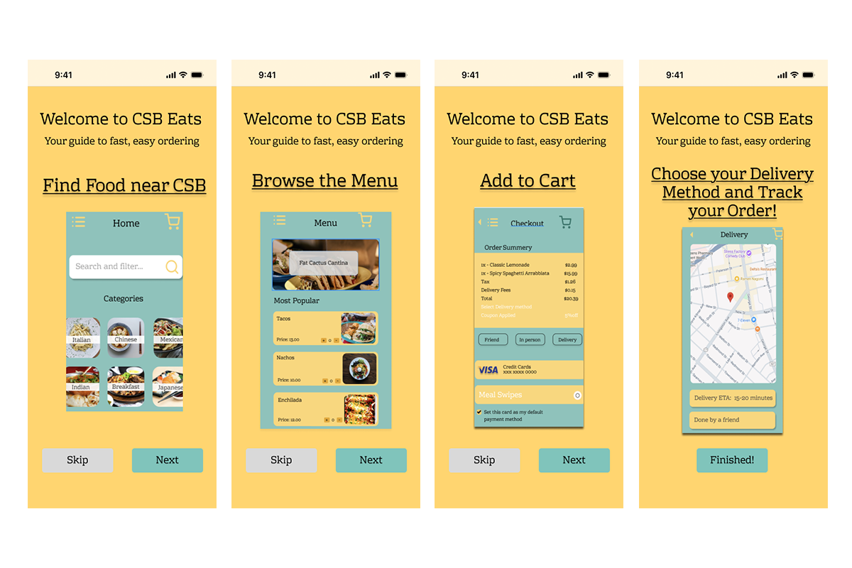 The final prototype streamlined the decision process for CSB students ordering lunch between classes and allowed them to successfully: